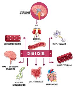 Chronically elevation of cortisol, referred to as hypercortisolism, can cause wide-ranging health issues. One of the clearest effects is on bone health. Clinical literature shows that excessive cortisol disrupts bone-building cells, reduces bone strength, and increases fracture risk — and in some cases, this risk remains even after cortisol levels return to normal (Zdrojowy-Wełna et al., 2024).